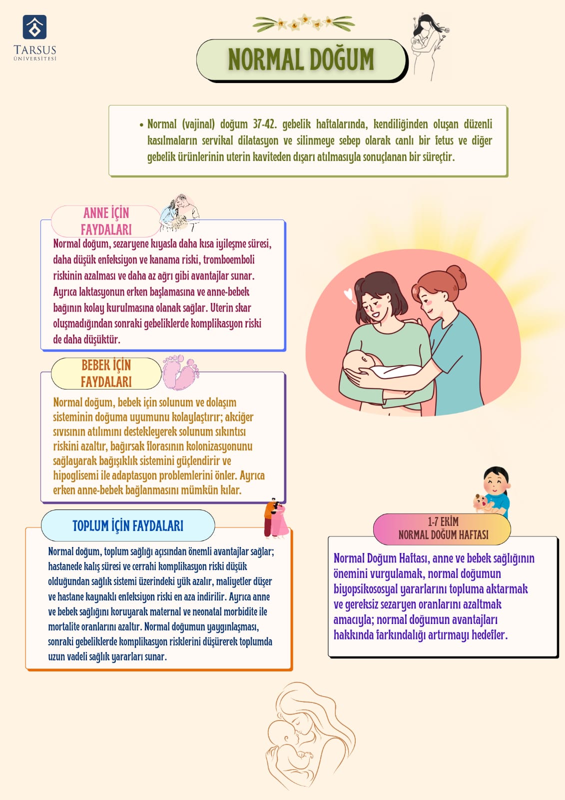 Videoda normal doğumun anne, bebek ve toplum sağlığı için yararlarına değinilmiş, normal doğuma yönelik farkındalık oluşturmak ve teşvik etmek amaçlanmıştır.