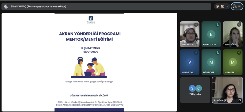 Tarsus Üniversitesi Sağlık Bilimleri Fakültesi Ebelik Bölümü, Akran Yönderliği Uygulama Komisyonun düzenlediği Akran Yönderliği Programı Mentor/Menti Eğitimi başarıyla gerçekleştirildi.