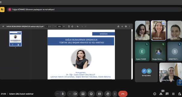 Lokman Hekim Üniversitesi Sağlık Bilimleri Fakültesi Ebelik Bölümü öğretim üyesi Dr. Öğr. Üyesi Özlem Ülkü Bulut’un konuşmacı olarak yer aldığı etkinlikte, sağlık bilimlerinde girişimcilik süreçleri ve TÜBİTAK 1812 programına ilişkin deneyimler ele alındı. Program kapsamında konuşmacı, proje hazırlama, başvuru ve değerlendirme süreçlerinden başlayarak destek almaya hak kazanma ve sonrasında şirketleşme aşamasına kadar uzanan süreci detaylı şekilde aktardı.
