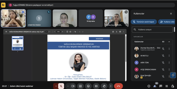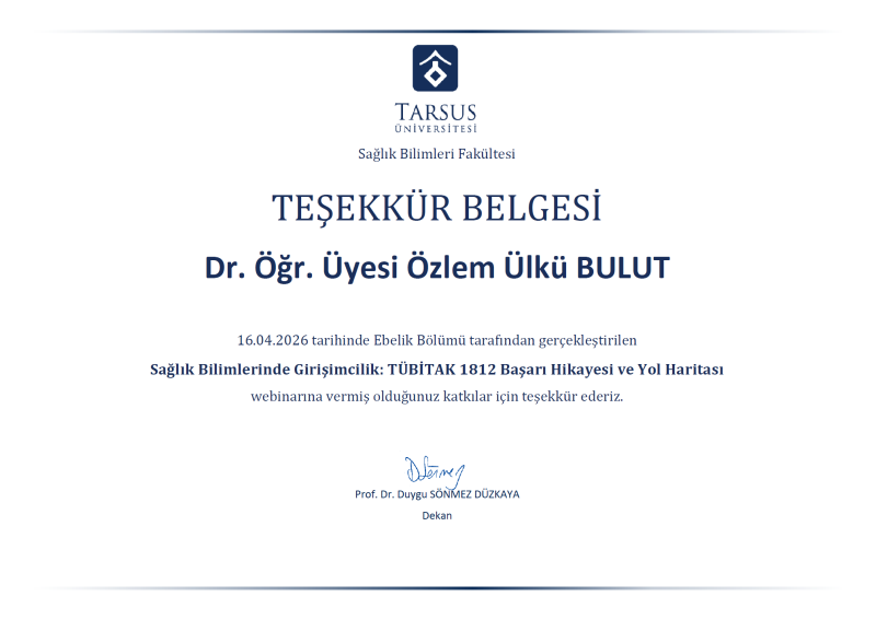 Tarsus Üniversitesi Sağlık Bilimleri Fakültesi Ebelik Bölümü tarafından 16 Nisan 2026 tarihinde “Sağlık Bilimlerinde Girişimcilik: TÜBİTAK 1812 Başarı Hikayesi ve Yol Haritası” başlıklı çevrim içi webinar düzenlendi.