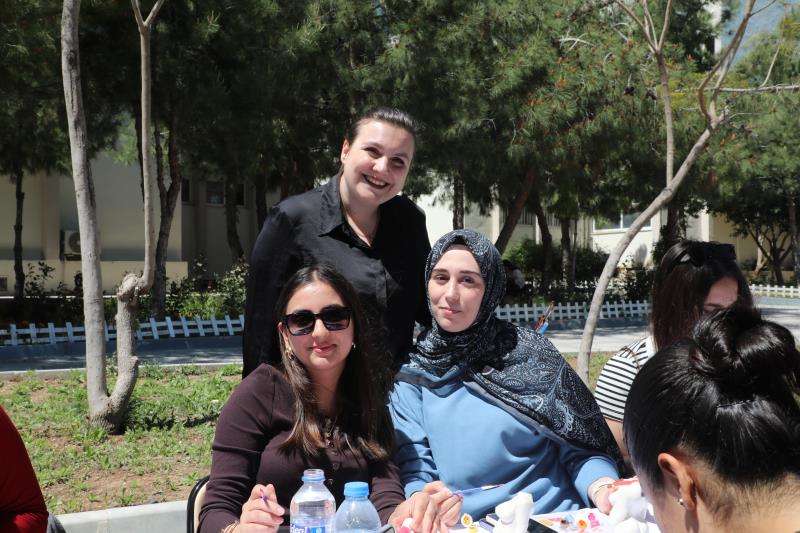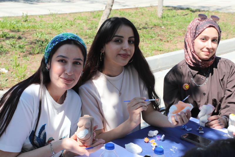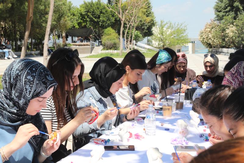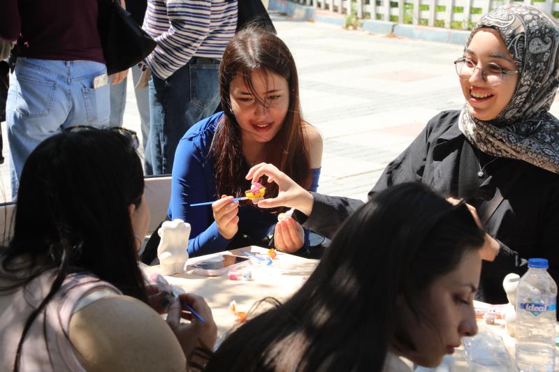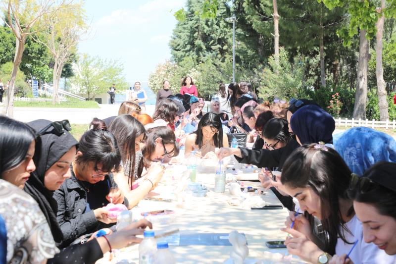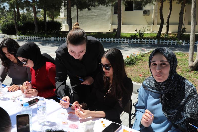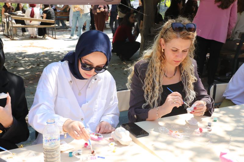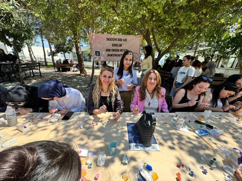Ebelik Figürlü Taş Boyama Atölyesi’ne 125 öğrenci katılım sağlarken, Akıllı İp Atkı Atölyesi’ne 30 öğrenci katıldı. Atölye süresince öğrenciler, hem el becerilerini geliştirme hem de mesleki kimliklerini yansıtan üretimler ortaya koyma fırsatı buldu. Özellikle ebelik figürleri ile zenginleştirilen taş boyama çalışmaları, mesleğin simgesel yönünü estetik bir ifade ile buluştururken, öğrencilerin yaratıcılıklarını ortaya koymalarına imkân sağladı.