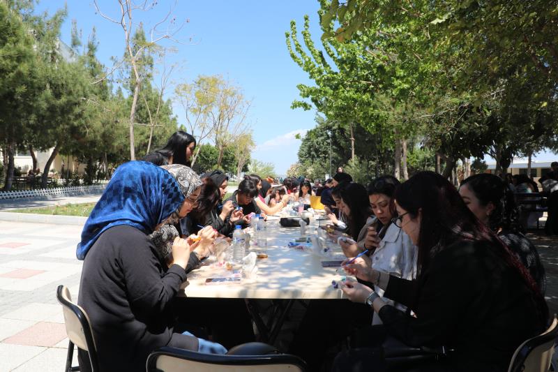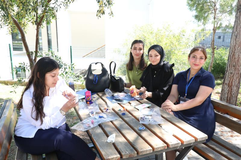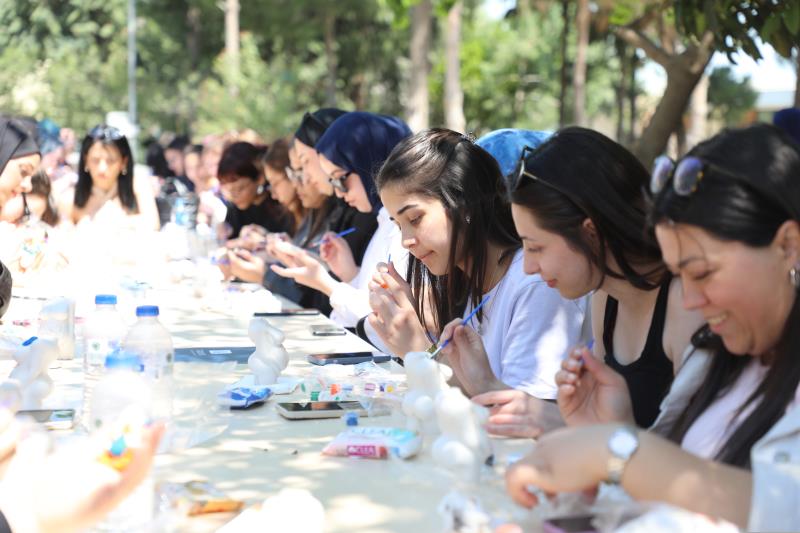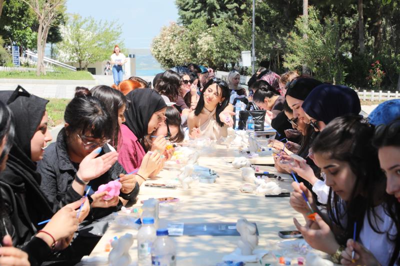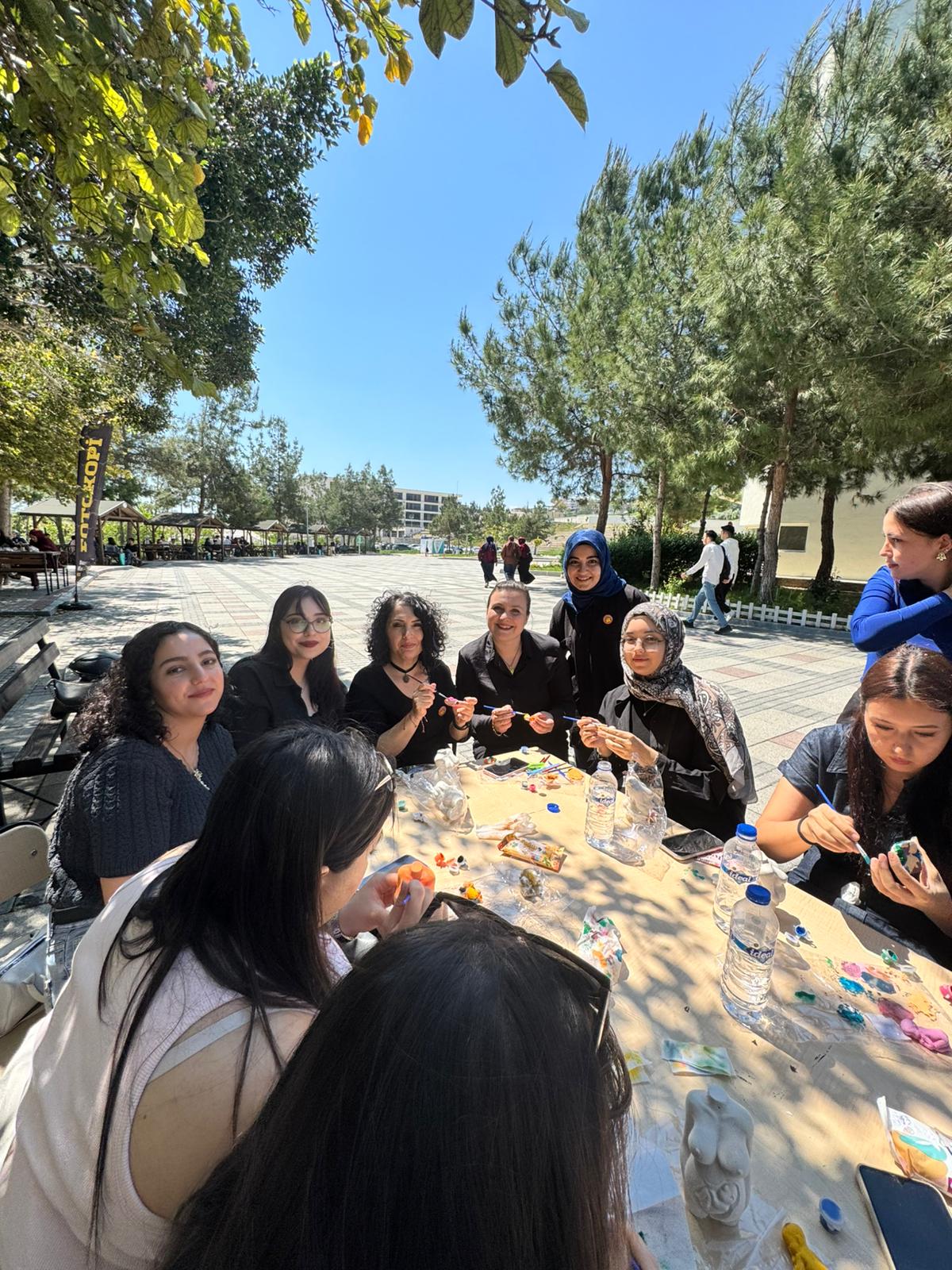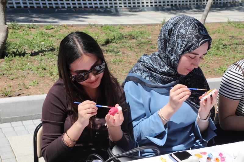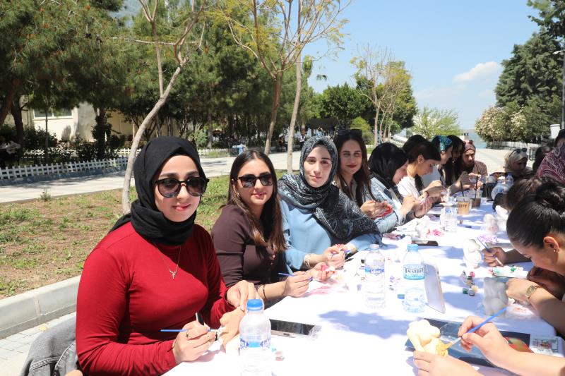 Ebelik Figürlü Taş Boyama Atölyesi’ne 125 öğrenci katılım sağlarken, Akıllı İp Atkı Atölyesi’ne 30 öğrenci katıldı. Atölye süresince öğrenciler, hem el becerilerini geliştirme hem de mesleki kimliklerini yansıtan üretimler ortaya koyma fırsatı buldu. Özellikle ebelik figürleri ile zenginleştirilen taş boyama çalışmaları, mesleğin simgesel yönünü estetik bir ifade ile buluştururken, öğrencilerin yaratıcılıklarını ortaya koymalarına imkân sağladı.