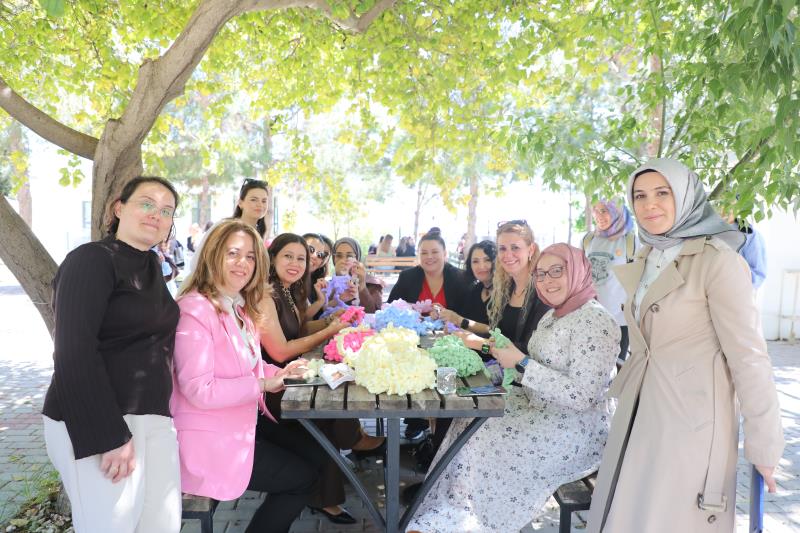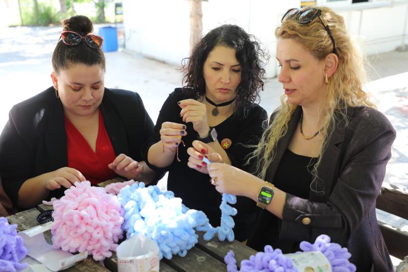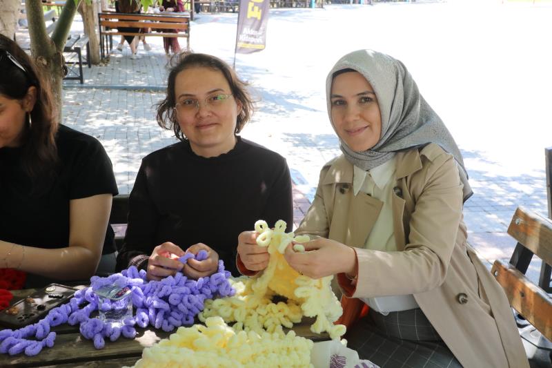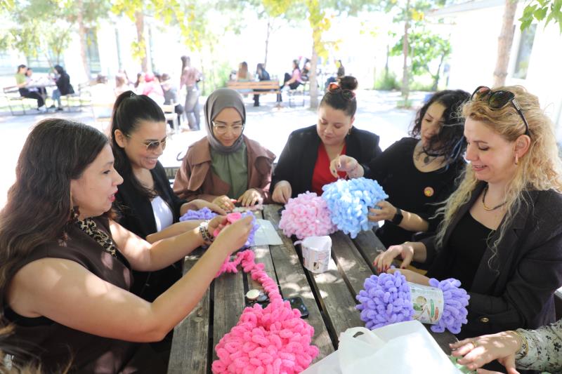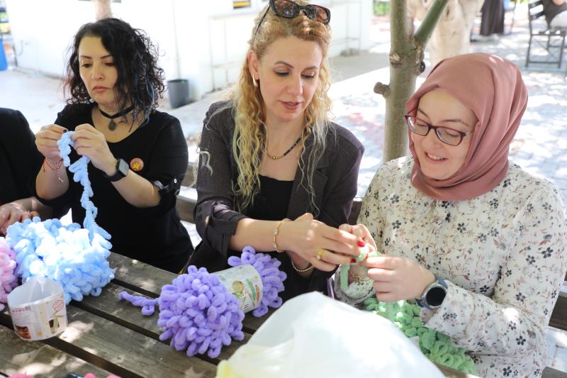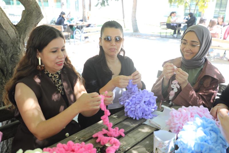 Akıllı ip atkı atölyesinde ise öğrenciler, el emeği ile üretim yapmanın yanı sıra birlikte öğrenme ve paylaşım deneyimi yaşadı. Atölye ortamı, öğrenciler arasında etkileşimi artıran, iş birliğini destekleyen ve sosyal bağları güçlendiren bir öğrenme alanı oluşturdu.